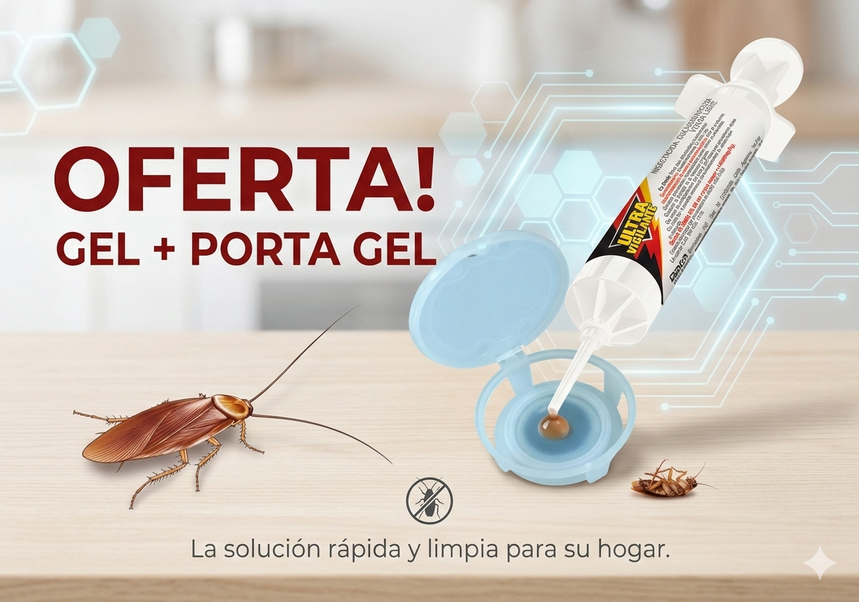 Incluye una jeringa de gel cucarachicida ULTRA VIGILANTE de 6 g y una estación cebadera adhesiva diseñada para aplicar el gel de forma segura, limpia y discreta en cualquier superficie.